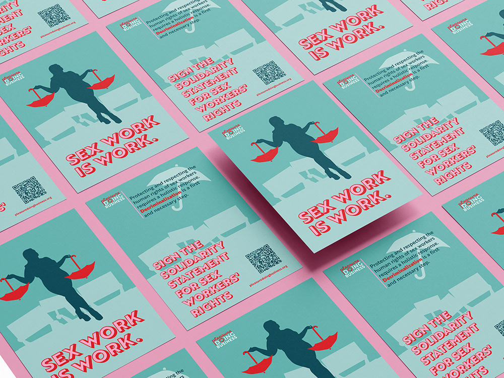 Pleasure Doing Business is a fictional non-profit that brings awareness to sex work. All design assets include: a logo, 6x5 inch flyer, bus stop ad, app design, and social media branding.